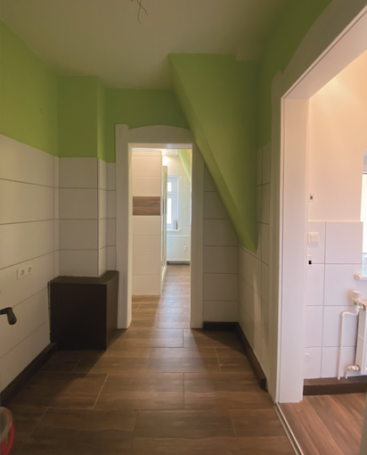 Der geräumige Flur und die Wohnküche bieten zusätzlich zu den Wohnräumen viel Platz für kreative Gestaltung und bieten eine einladende Atmosphäre zum Wohlfühlen.